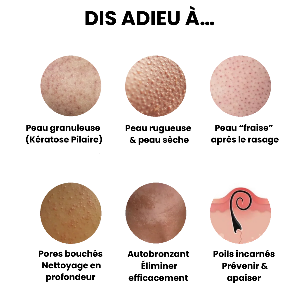 "Wow, incroyable ! Je l’utilise à chaque douche et ma peau est tellement plus lisse. Fini les zones sèches."